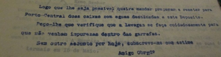Sob o título "Copiador", descobri na "biblioteca" do Hotel Águas do Gerês, neste fim-de-ano, uma compilação encadernada de cópias de cartas, obtidas a químico, que mostram a dimensão das mudanças ocorridas em Portugal no século XX. Registo, com uma curiosidade que me fez fotografar a cópia, uma carta escrita no Porto, a 7 de Abril de 1942, a requerer duas caixas com garrafas de água e a recomendar, ao mesmo tempo, lavagens cuidadosas para que as garrafas requeridas não apresentassem impurezas. Ainda há muitos portugueses vivos que são testemunhas destas enormes mudanças.
