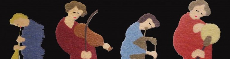 Como confessei na página facebooquiana "Escrita Clara de Júlio Roldão", fotografei, ontem, num restaurante em Lisboa, um pedaço de um rótulo de uma garrafa de vinho, do Alentejo, cujo ficheiro jpeg foi alvo de uma alquimia especial num velho programa Adobe Photoshop CS4. Filtros à parte, no final da magia, aquilo mais parecia uma tapeçaria manufacturada em Portalegre, apesar do fundo preto falso, e das bocas e dos olhos das instrumentistas também falsos. Ainda sob a influência das impressões fotográficas de Wolfgang Tillmans que estão patentes em Serralves "no limiar da visibilidade". Ainda com a nostalgia de poder, um dia, mandar manufacturar um desenho meu na Manufactura de Tapeçarias de Portalegre.